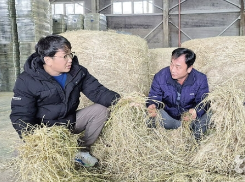 Kiểm tra tình trạng khô của thức ăn thô xanh tại cơ sở TMR Dangjin với sự tham gia của cán bộ hợp tác xã chăn nuôi Dangjin