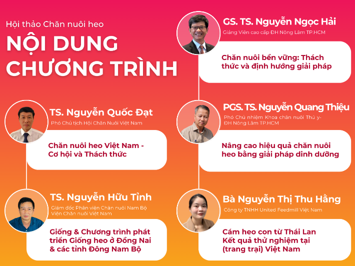 참석자들은 Nguyễn Hữu Tỉnh 남부 축산 연구소장의 “동나이 및 남동부 지역 돼지 품종 개발 프로그램” 발표를 통해 지역 돼지 품종과 프로그램에 대해 배울 수 있다.