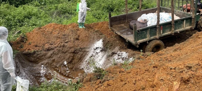 군과 시 인민위원회는 질병 발생 정도와 영향을 고려하여 ASF 발생을 공식 선포하고, 방역을 위해 모든 자원을 동원하여 신속 대응팀을 구성하고, 발병 초기 단계에서 빠르게 보고하고 대응해야 한다. 병든 돼지와 폐사한 돼지를 철저히 폐기하고, 생물학적 안전을 보장하여 질병 확산을 방지해야 한다.